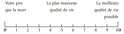 - 10 % : totalement dépendant, ne peut aider en rien, complètement invalide.