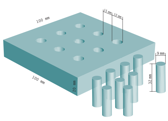 un cylindre de 5 cm de long et de 12 mm de diamètre ;