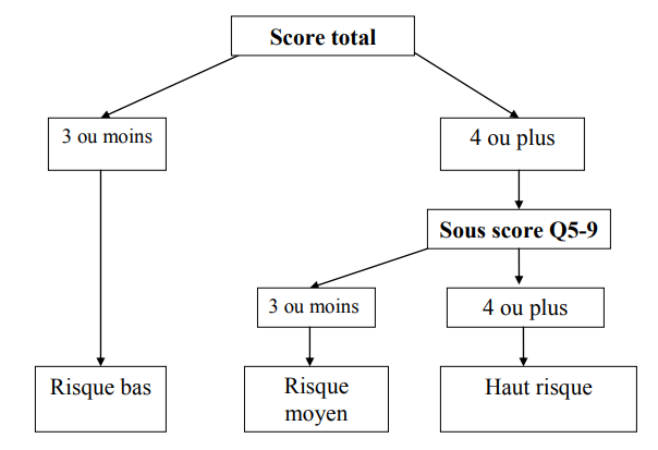 Score total sur 9 La sous-échelle psychosociale (Q5-9) comprend les items 1, 4, 7, 8 & 9.