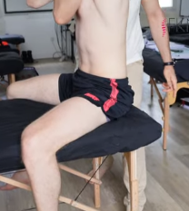 Appliquer une force verticale avec le poids du corps pour générer une inclinaison lombaire durant le moment expiratoire du patient