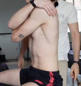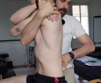 Croiser les bras du patient, le MK passe son bras sous le bras et vient chercher la vertèbre