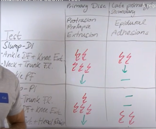 In less severe protrusions, epidural adhesions, and nerve root compression or intermittent neurogenic claudication, different build-ups of the slump can help you to distinguish the different disorders.