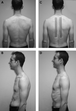 La cyphose thoracique du patient est réduite soit par une réduction manuelle douce, soit par la pose de bandes adhésives. Une fois cette réduction obtenue, l’activité aggravante est réévaluée afin de déterminer la réponse.