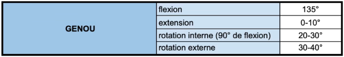 Amplitudes du genou
