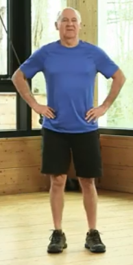 - Bascule talon-pointe genoux tendus avec appui des mains