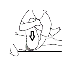 Patient en décubitus dorsal , le thérapeute pose ses mains sur les EIAS et applique 3 à 6 poussées à vitesse modérée, en augmentant progressivement la vitesse
