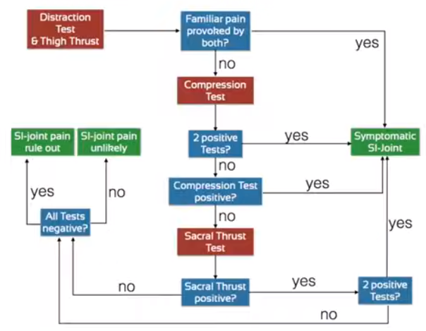 Si les 2 premiers tests sont positifs, la douleur est d’origine sacro-iliaque. Aucun autre test n’est nécessaire.